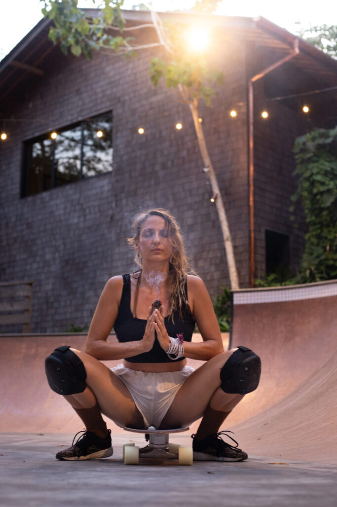 I am paying attention to my nervous system every day, through practises, to come back to my full regulation after my loss. My body s teaching me every day, what pleasure is for her. I’m learning to enjoy my days, embracing the dualities of life and of my character. Surfergirl, Tantric Woman, Healer, Skater, Musician. I am all oft that.